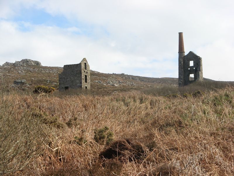 Erste Hinterlassenschaften des Zinnbergbaus in Cornwall. An der ganzen