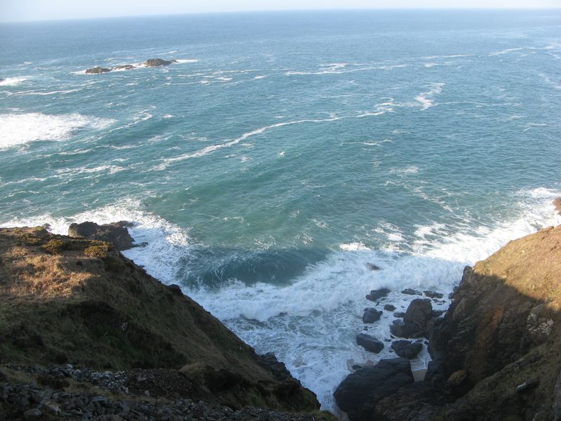 schimmert der Spray der Brandung. In der Ferne sieht man wieder die