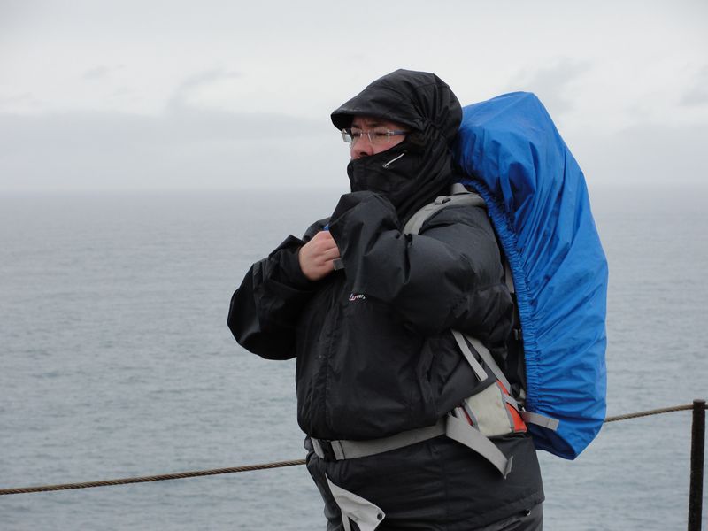 einmal bei Regen und kaltem Wind steil das Ufer hinauf. |