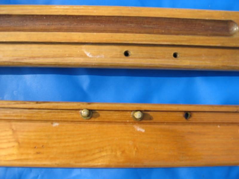 „Langhölzer“ die zweite. Von oben: Boomerang (Reserve), 2 x Waschbord (Reserve), 2 x Süllrand, 2 x Süllrand (Reserve), Boomerang, 2 x