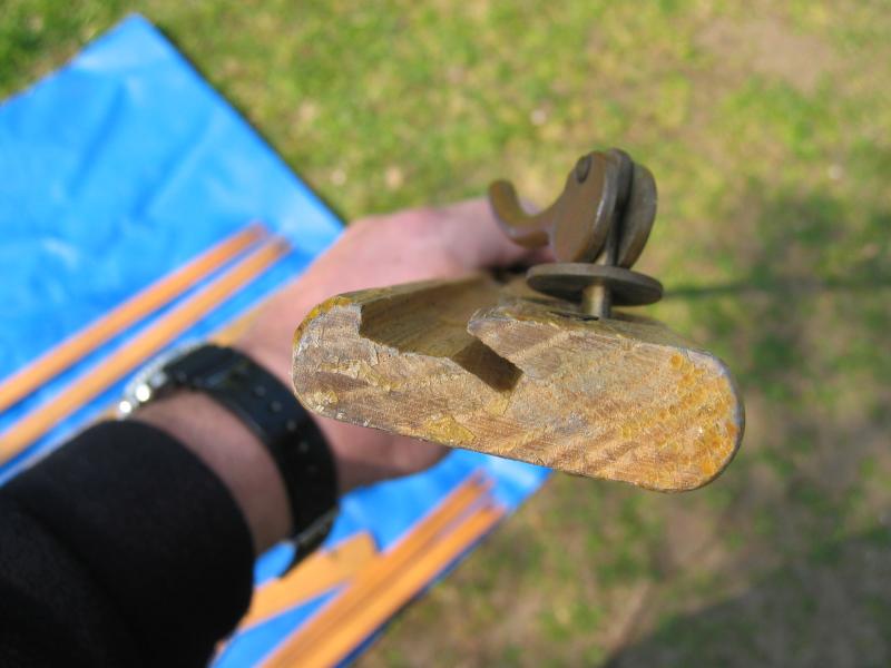Spant 4. Durch die großen Löcher werden die Bogenstreben geführt, durch die kleinen die Steuerleinen. Die kleinen Löcher sind mit
