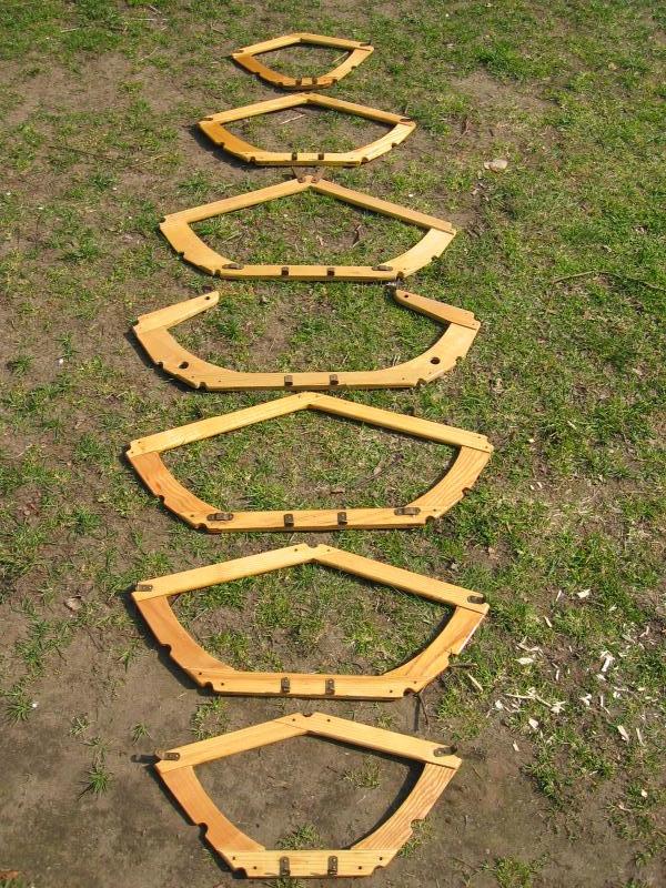 Spant 5. Unten die Befestigungen für die Bogenstreben. |