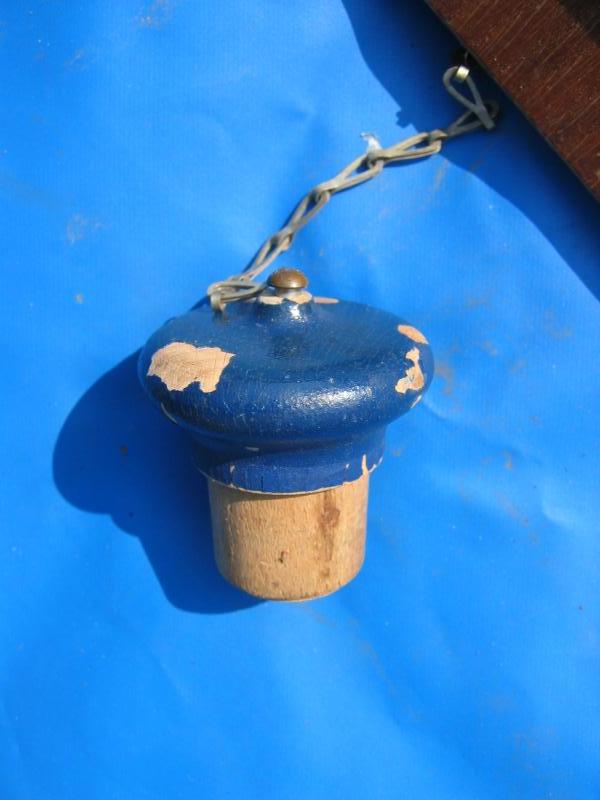 Der prächtige Holzstopfen harrt der Neulackierung. Eine Banausin nannte ihn „Pömpel“. Anja, ich verzeihe Dir! |