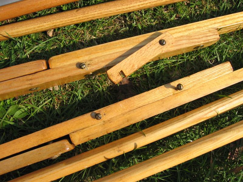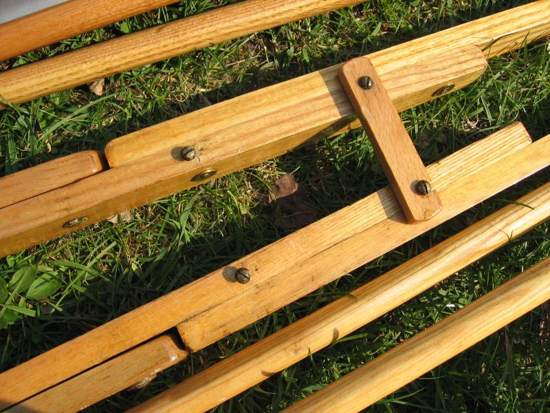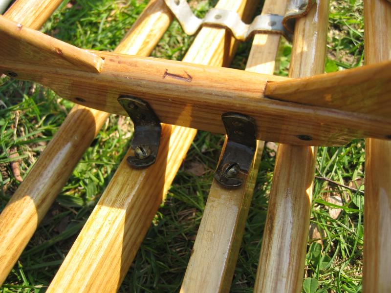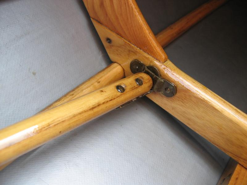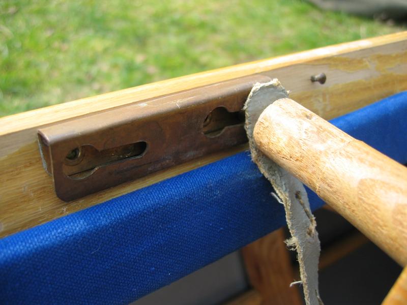 zur Sicherung der Rückenlehne befestigt. Riemen und Messinghülsen an der Strebe müssen ersetzt werden. |