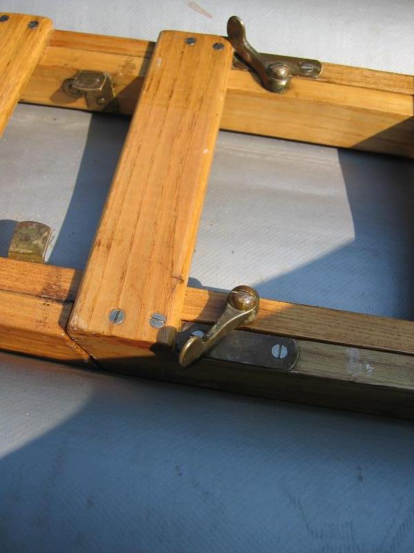 Die Vorreiber auf der Bodenleiter. Sie liegen im Verriegelungszustand auf kleinen Metallplättchen der Bodenleiter. Dieser Schutz ist nicht unbedingt bei