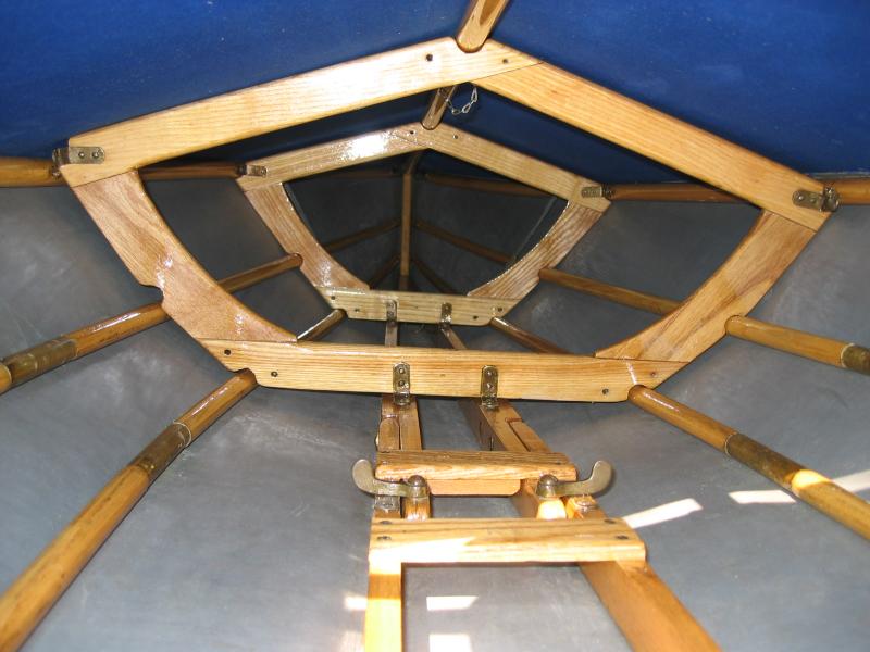 Blick auf die Bogenstreben. Sie dienen der Stabilisierung des Gerüstes. Ein Konstruktionsmerkmal typisch für Hammer- Boote. |