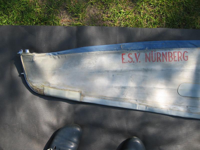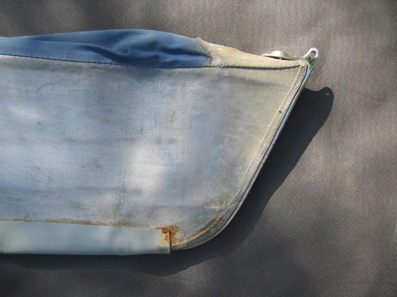 Hier kann man recht gut das feinere Gewebe der Oberdecks erkennen (s. auch Seite 1). Der Flicken rechts entspricht in etwa der Struktur der heute