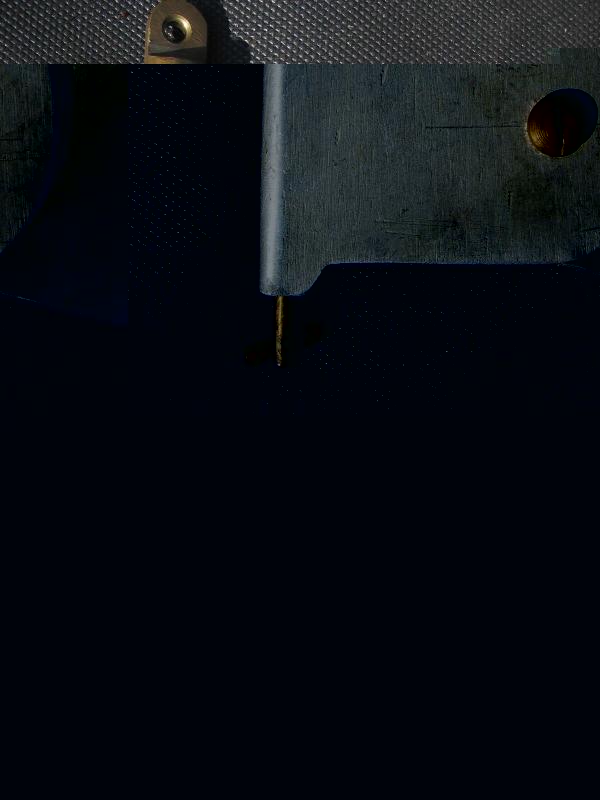 Detail der Aufhängung. Der Stift in nicht allgemein üblicher Ausführung. |