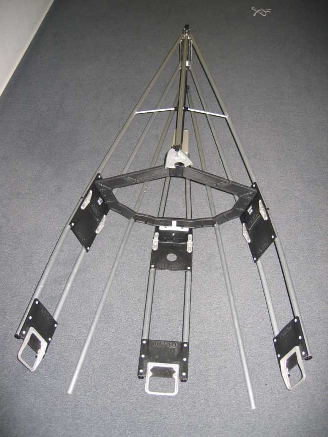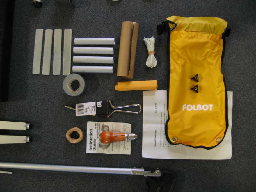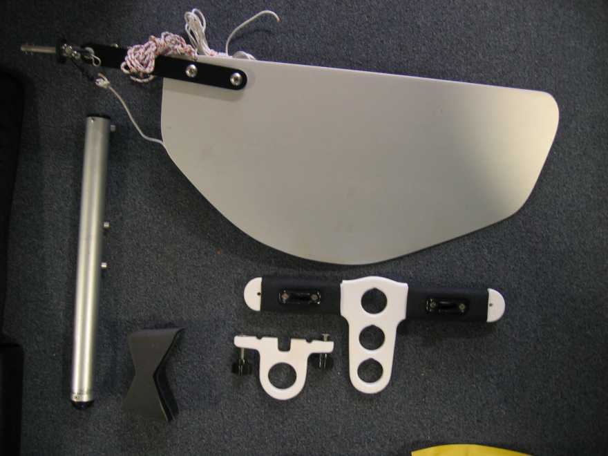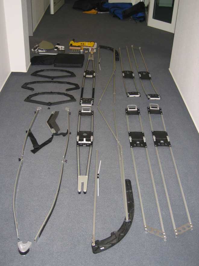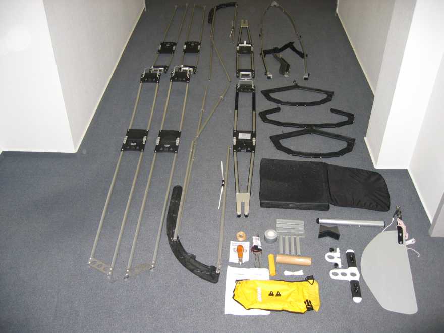 Die Teile des Gerüstes. Nicht zu sehen: Haut, Spritzdecke, Kompass (hatte ich anstatt des Paddels genommen).