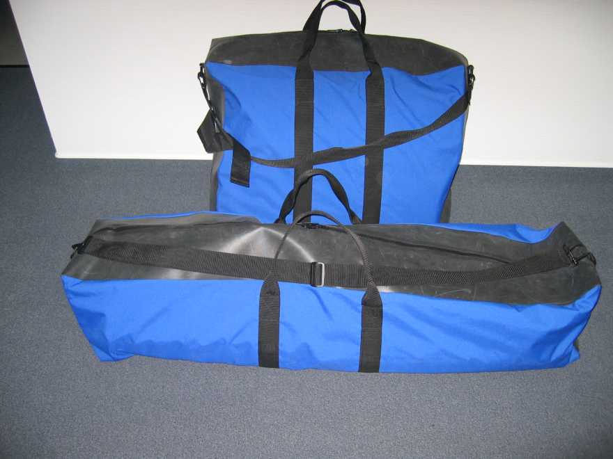 Die Taschen sind sehr robust, mit Reißverschlüssen und Trageriemen versehen. Der Schnitt ist großzügig, es passt noch reichlich anderes Zeugs