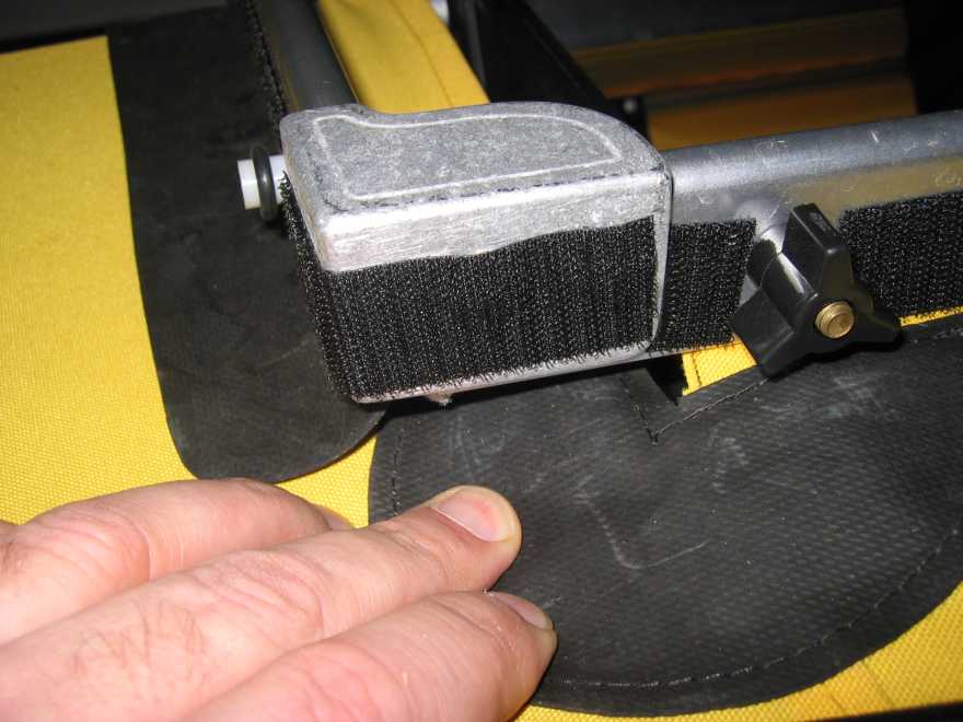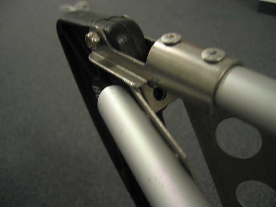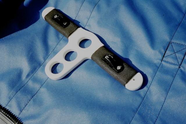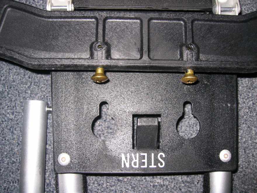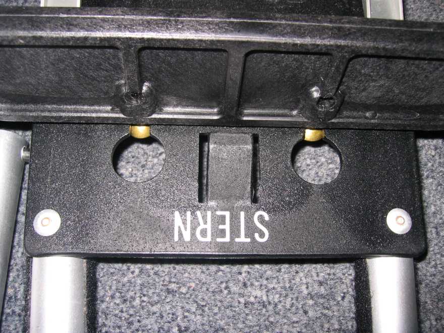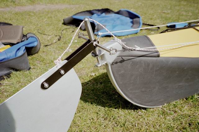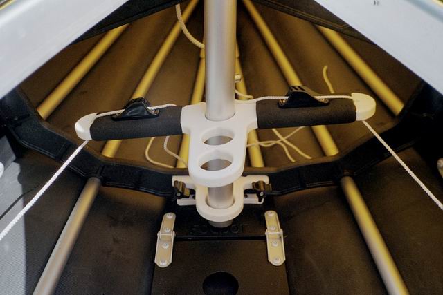 Das eingebaute Steuerjoch. Ist bequem am aufgebauten Boot ein- und ausbaubar. Einfach das mit Federknöpfen gesicherte Rohr in der Mitte nach oben heraus
