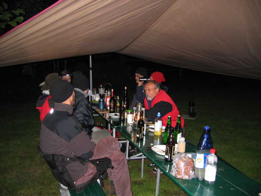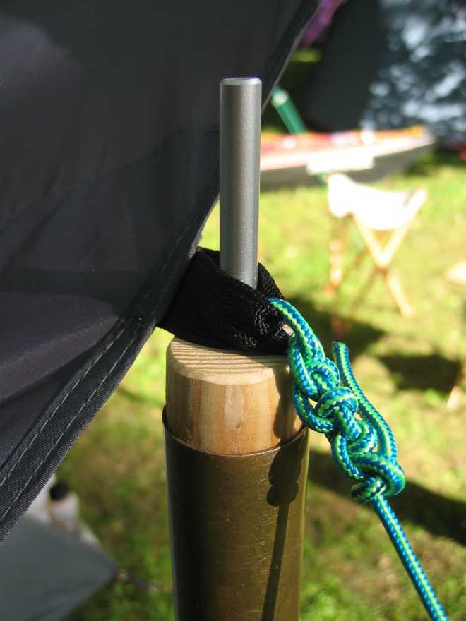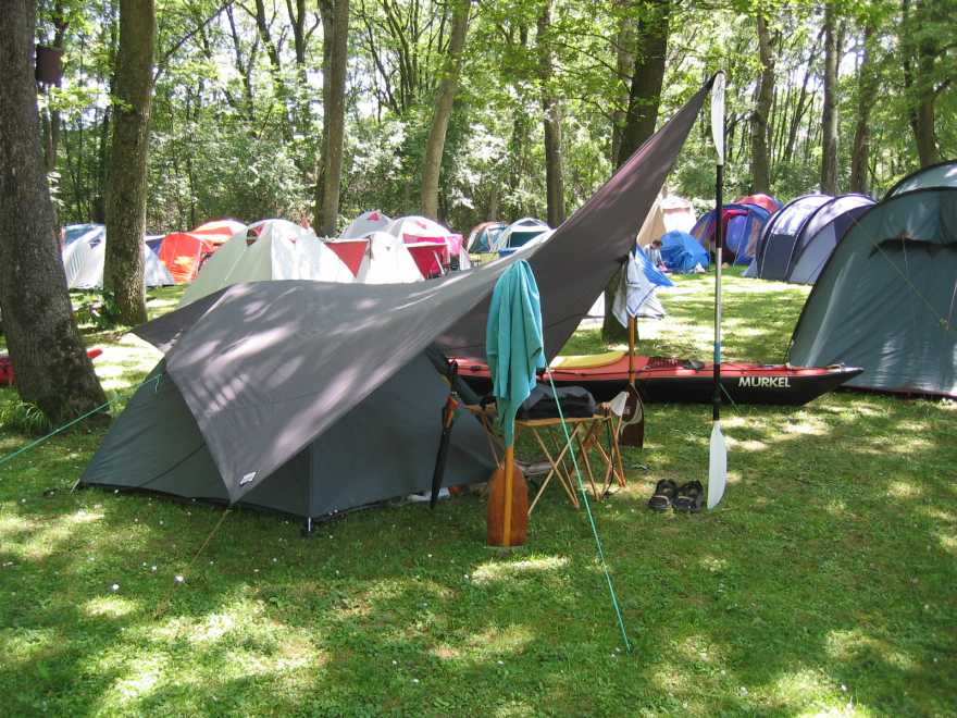 Auf diesem Foto Spreewaldtreffen 2004 kann man das bei einer anderen Verwendung eines Tarps als Schutzdach über einem Essplatz sehen. |