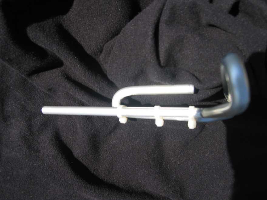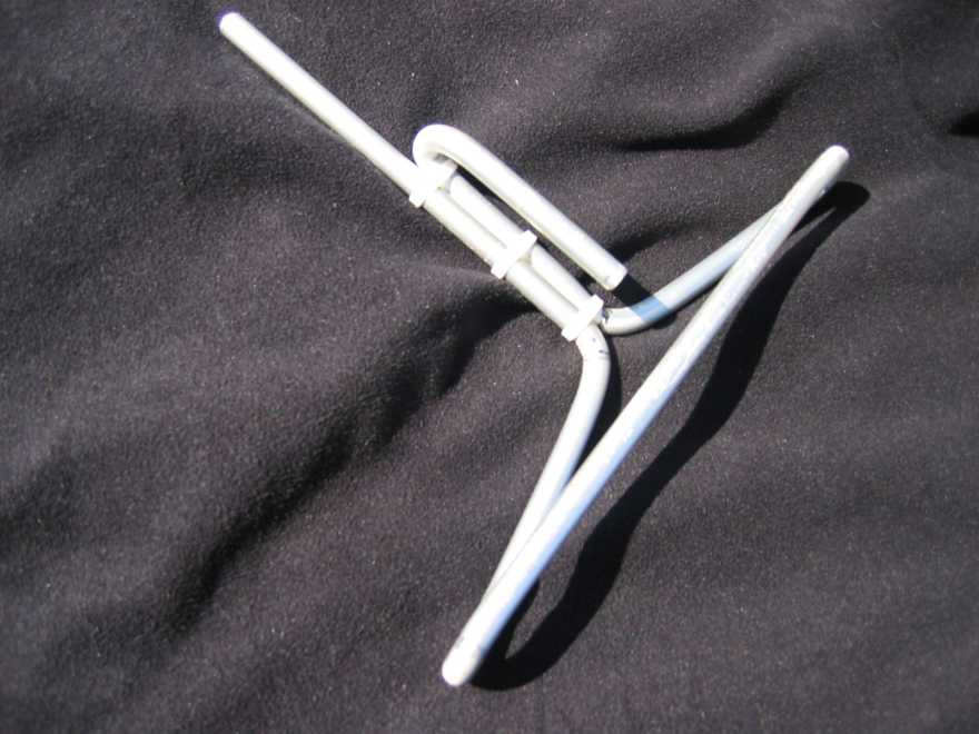 Der Dorn wird von einem Stabende gebildet, der Bügel von dem anderen. Zusammengehalten werden die beiden Enden durch Kabelbinder. Dies reicht völlig
