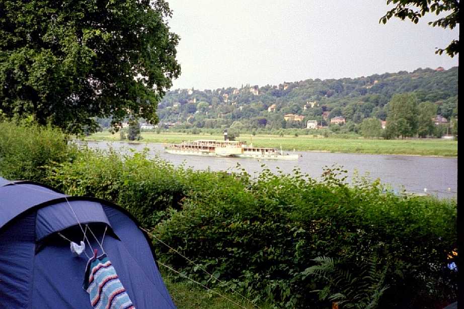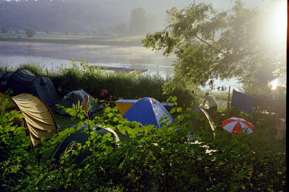 Auf dem Campingplatz von Stadt Wehlen gab’s Freibier, denn Wehlen war die Partnerstadt der Tour 2002. Da wir hinten dran waren, gab’s für uns