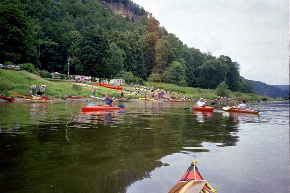 Am Sonntag dann der Start in Schmilka. Die Boote wurden dort hintransportiert. Da die Transportkapazität knapp bemessen war, mussten wir Faltbooter in