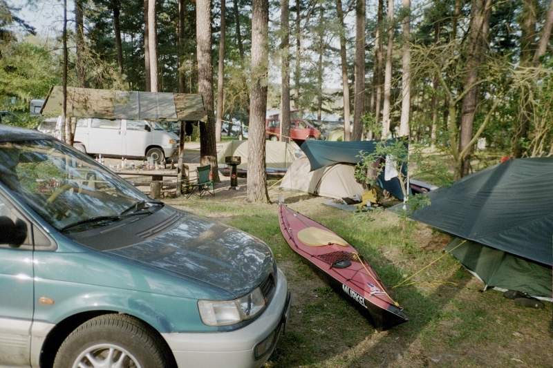 Alles, was benötigt wird, ist in gutem Zustand vorhanden. Aufstellplätze für die Zelte findet man reichlich, zumeist unter hohen Kiefern. Das ist bei