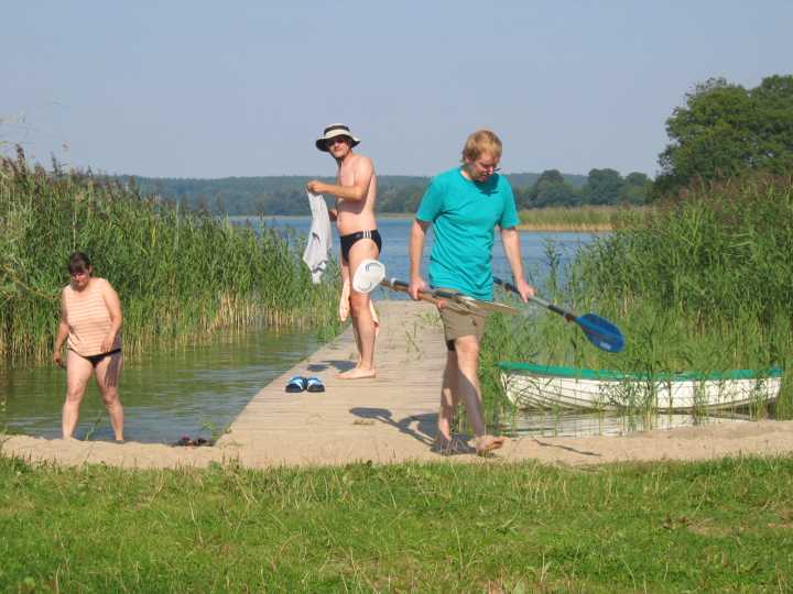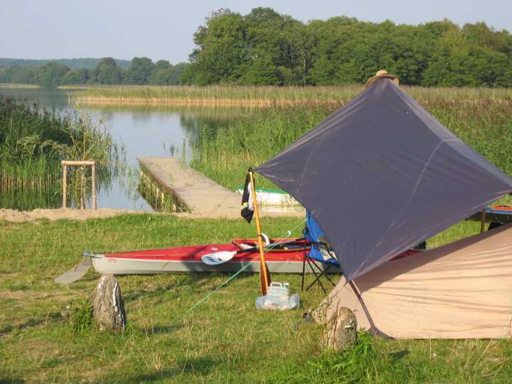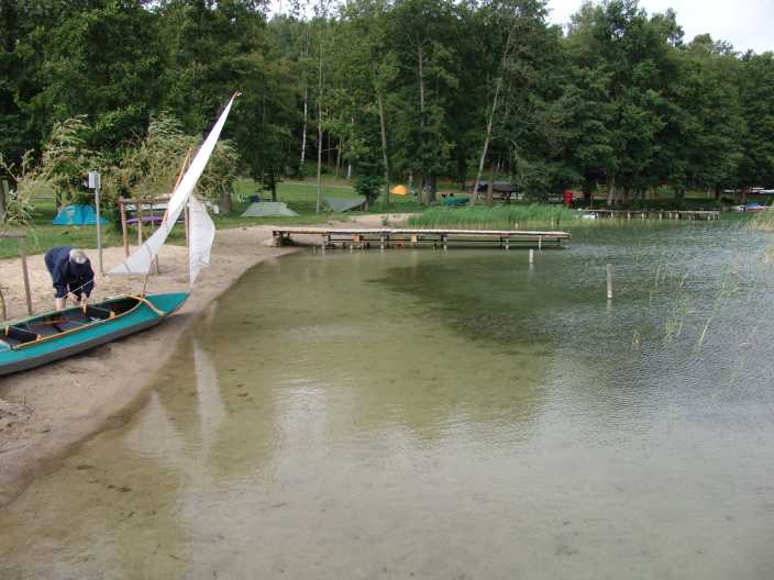 Der Campingplatz „Am Bauernhof“ ist gut ausgestattet und bietet schöne Zeltplätze. Wenn genug Platz vorhanden ist, kann man direkt am See