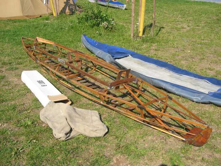 Nicht mehr fahrbereit, aber trotzdem schön – ein altes Kleppergerüst. Derartige Exponate findet man auf Faltboottreffen häufiger. |
