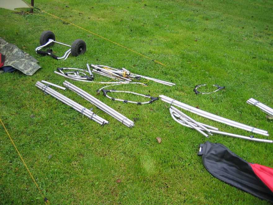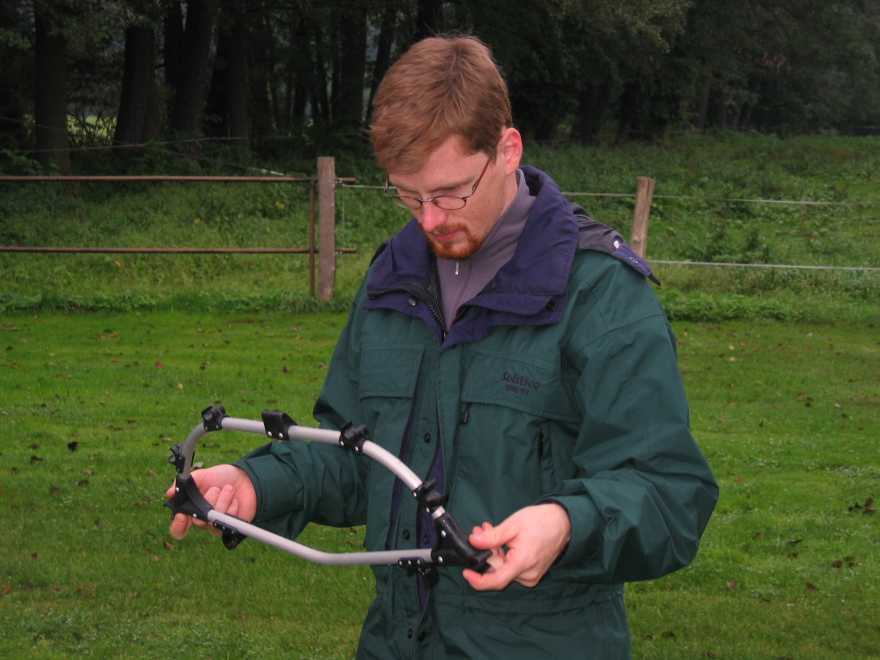 Auch der glückliche Neubesitzer rätselt noch. Später kam er beim Aufbau noch mächtig in Schweiß, da die Haut recht straff sitzt. |