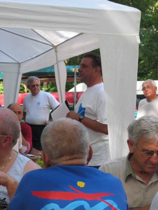 Am Samstag: großer Bahnhof. Hier der Tour- Präsident Max Scharnböck bei seiner Begrüßungsrede. Danach wurde es recht gesellig. |