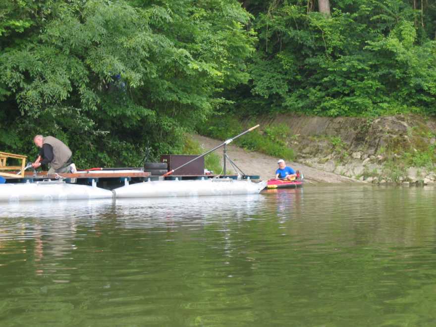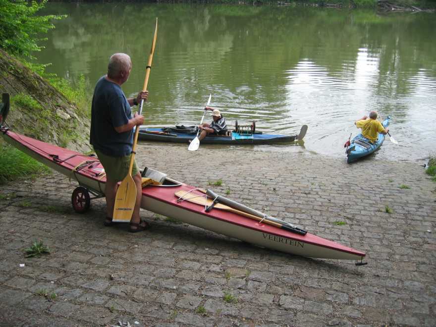 Die Einsetzstelle in Ingolstadt. Jens überprüft nach einmal sein Paddel – in Wien muss er sich ein neues Paddel kaufen, denn da hatte er