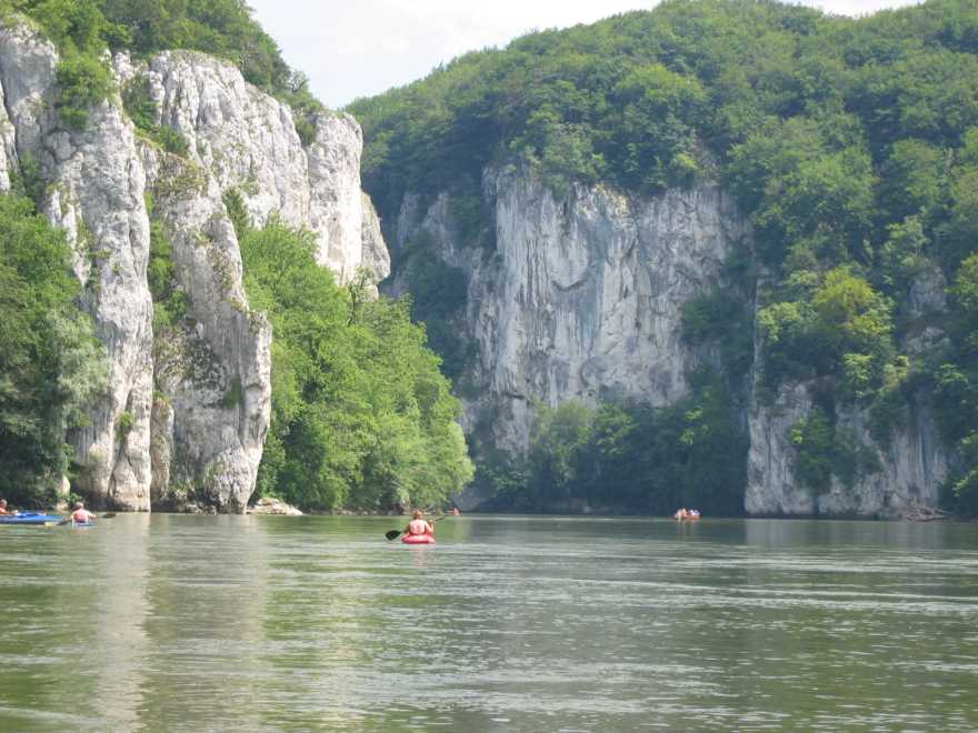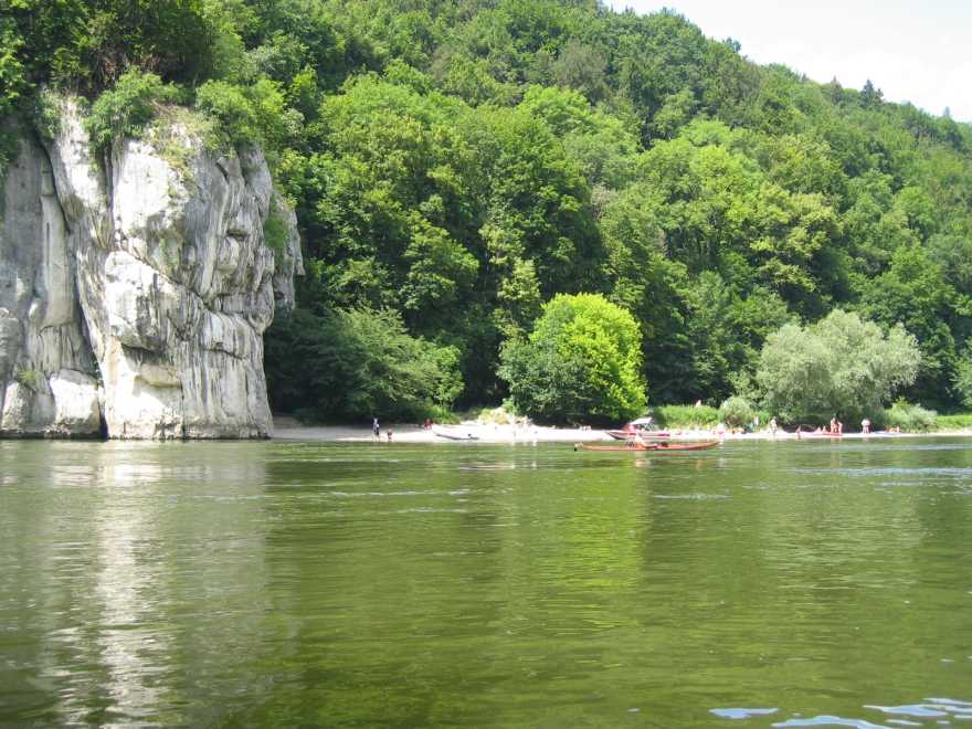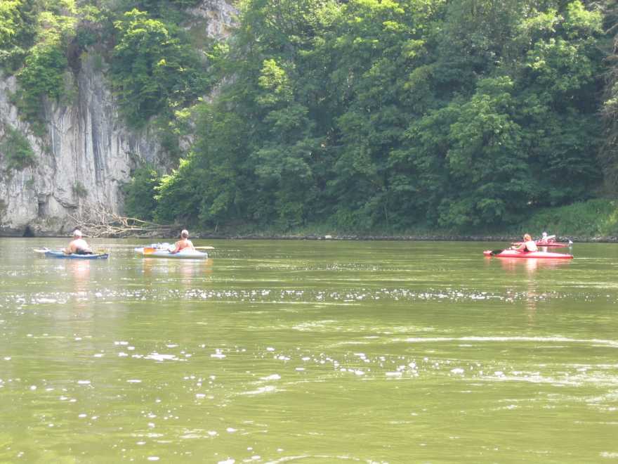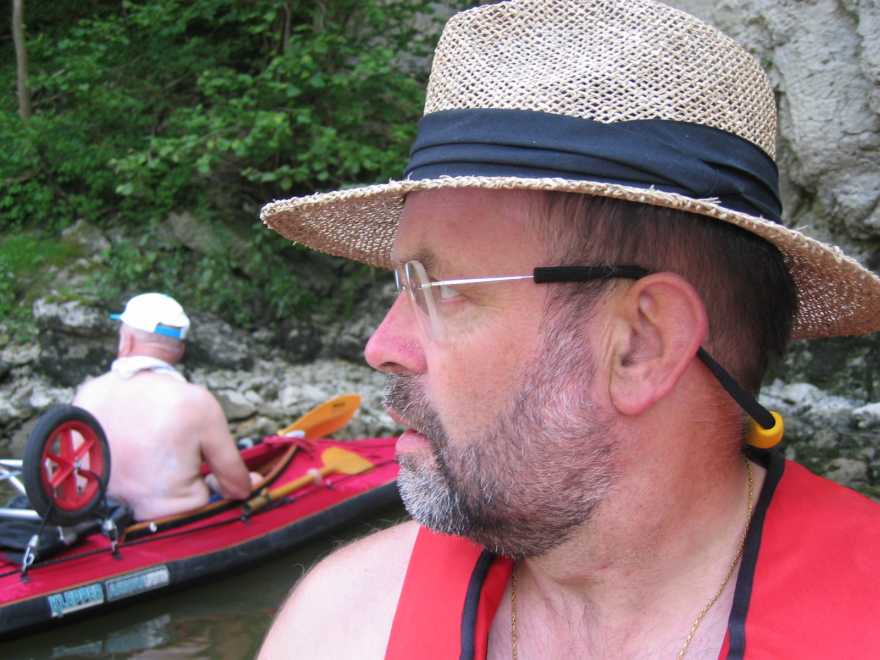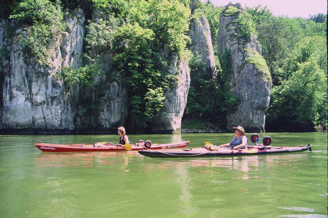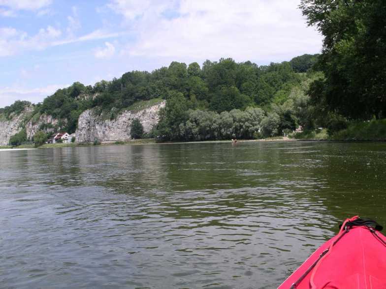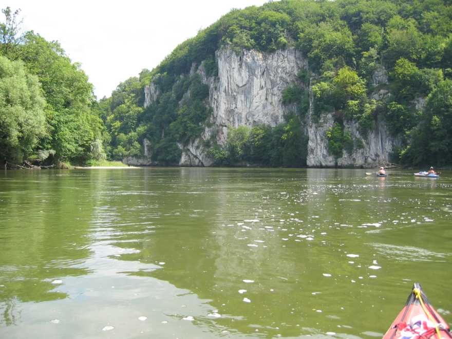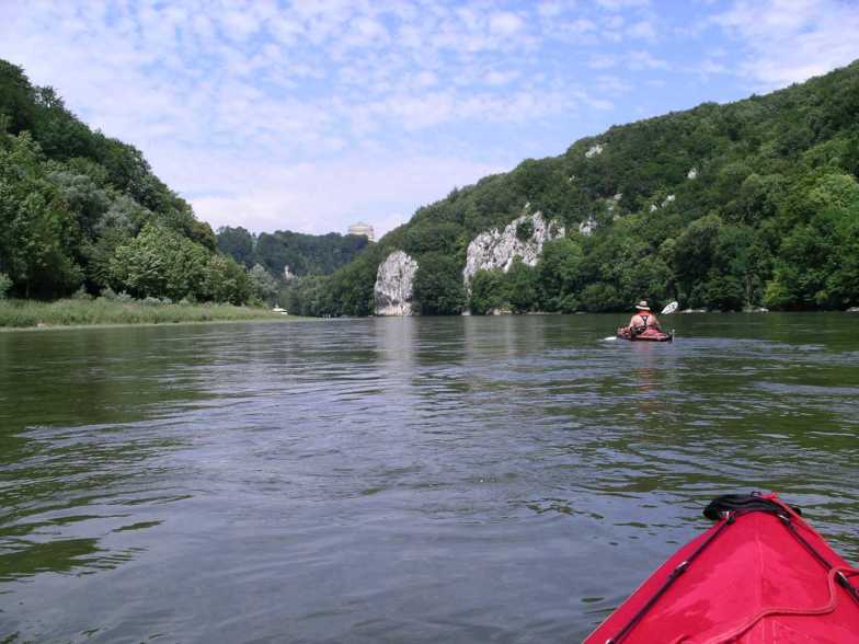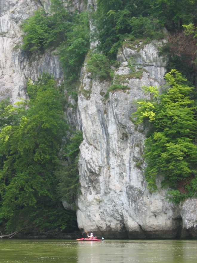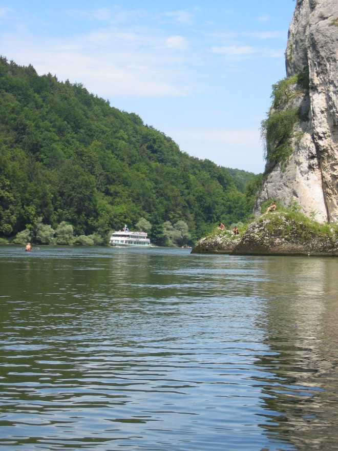 … einem, der bei Paddlern mit Recht geliebten Ausflugsdampfer aus Kelheim. Horst war zu nah am Felsen und hatte arge Mühe, im Wellengang klar zu