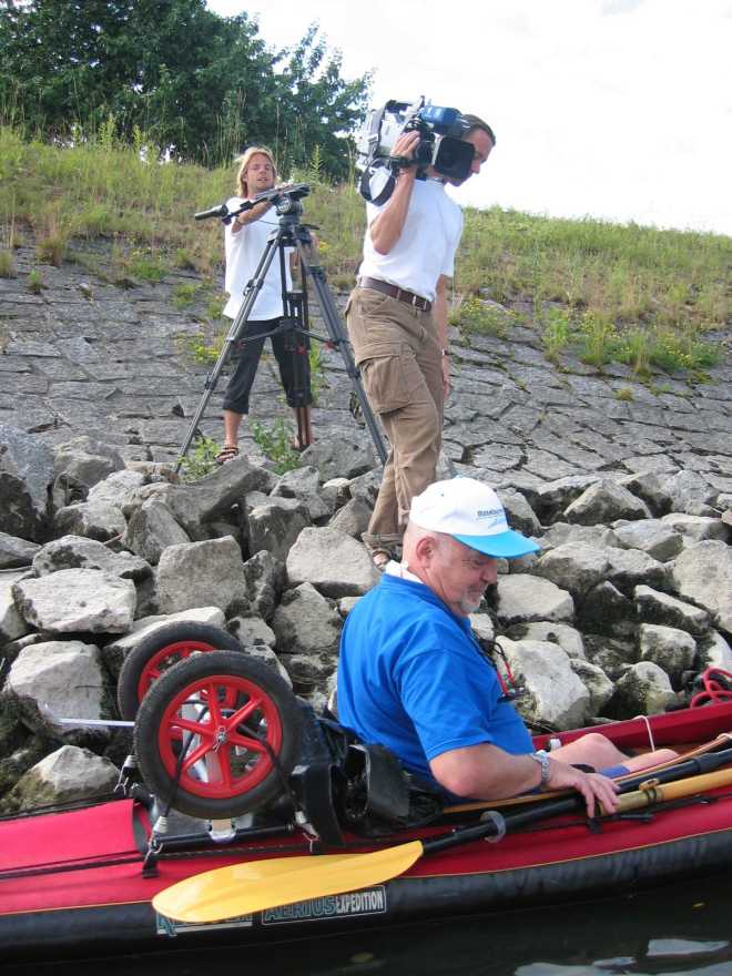 Auch Fernsehleute waren da. Sie drehten einen kleinen Film für das Vorabendprogramm. Worauf die bloß die ganze Zeit bei der Bootsrutsche gewartet