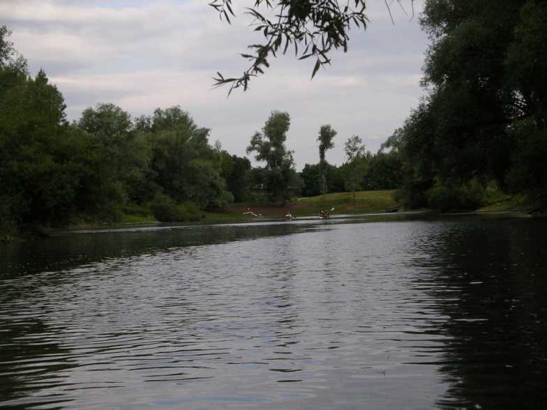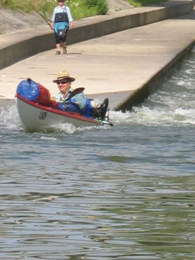 Einfahrt aus dem Main-Donau Kanal in einen alten Flussarm der Altmühl bei Kelheim. Man kann auch auf Höhe des Sportplatzes, wo wir unser Camp hatten,