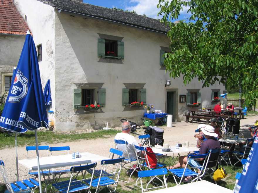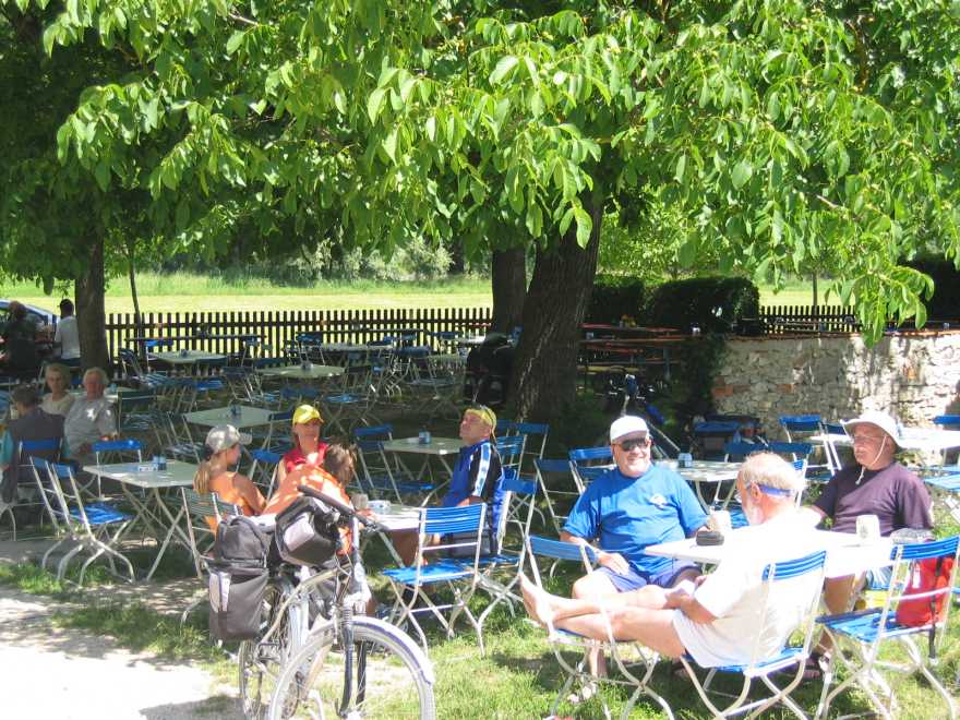 Nach kurzem Gang flussab der herrliche Biergarten des Zunftstüberls. |