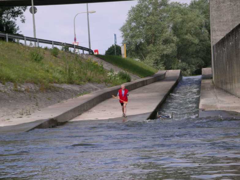Es geht aber auch mit Treideln. Grundsätzlich vorher immer Bootsgassen anschauen! Wenn Bedenken da sind – dann lieber so. |