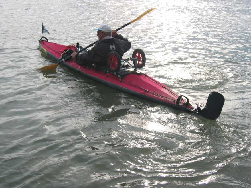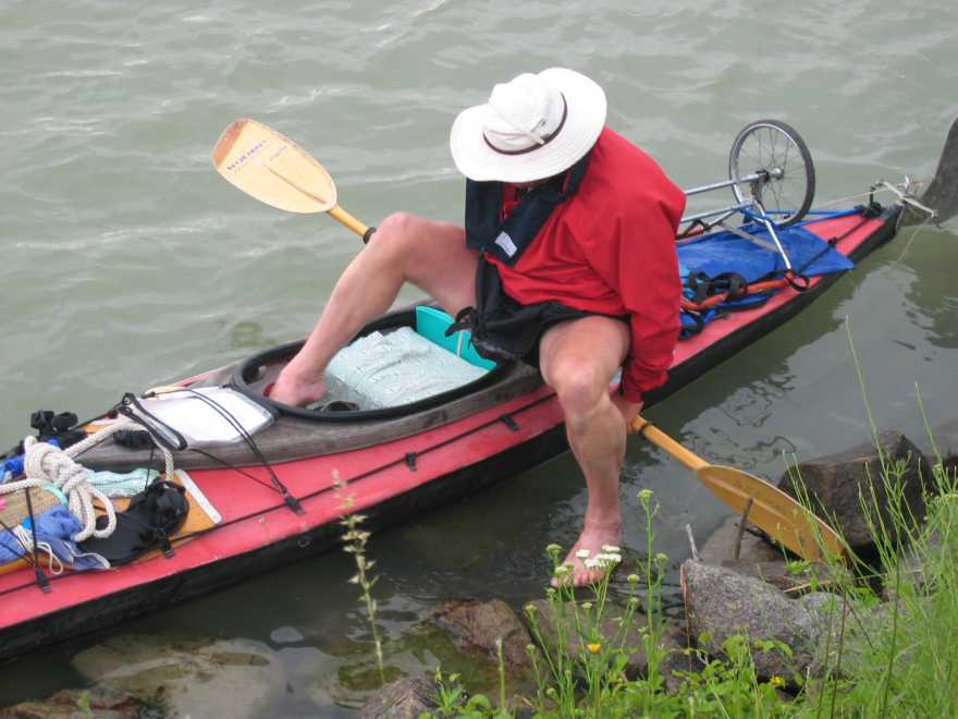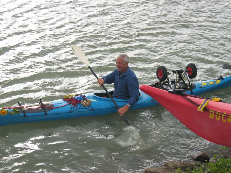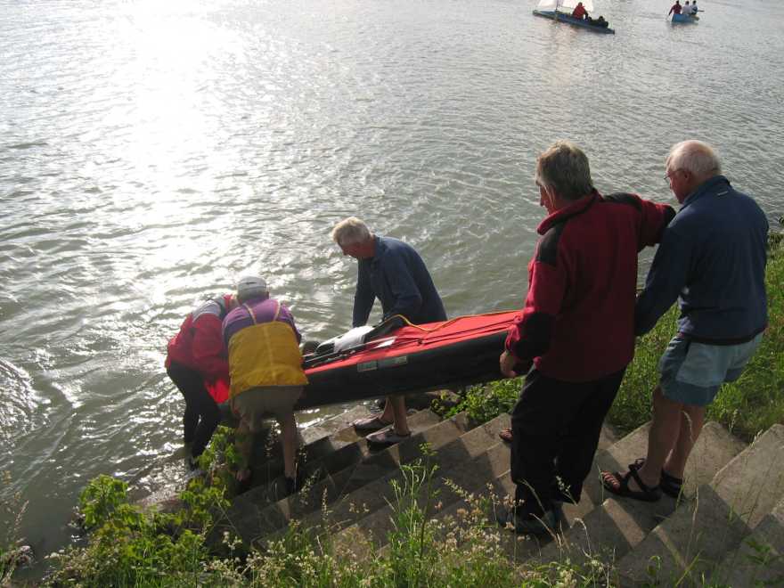 Diese Landestelle ist eigentlich nicht für Paddler gedacht. Vorsichtig wird Birgits AE I ins Wasser gelassen. |