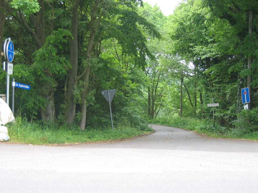 Wenn man in Kupfermühle starten will, muss man hier (km 8,4 von Bad Oldesloe kommend) von der Straße Bad Oldesloe – Bad Segeberg abbiegen. |