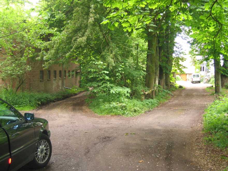 Ein Stück den Weg herunterfahren und dann hier den linken Weg nehmen. Man kann bis zur Pferdekoppel vorfahren und ausladen. Das Fahrzeug sollte man hier