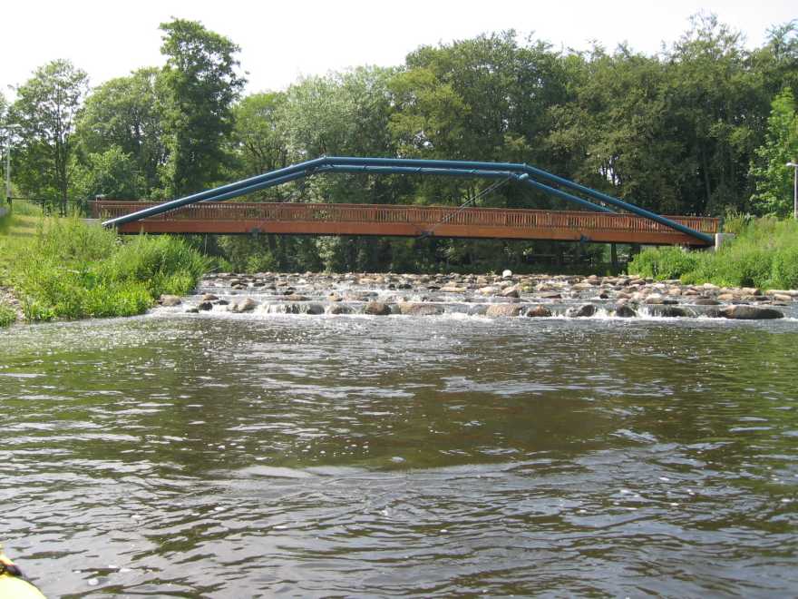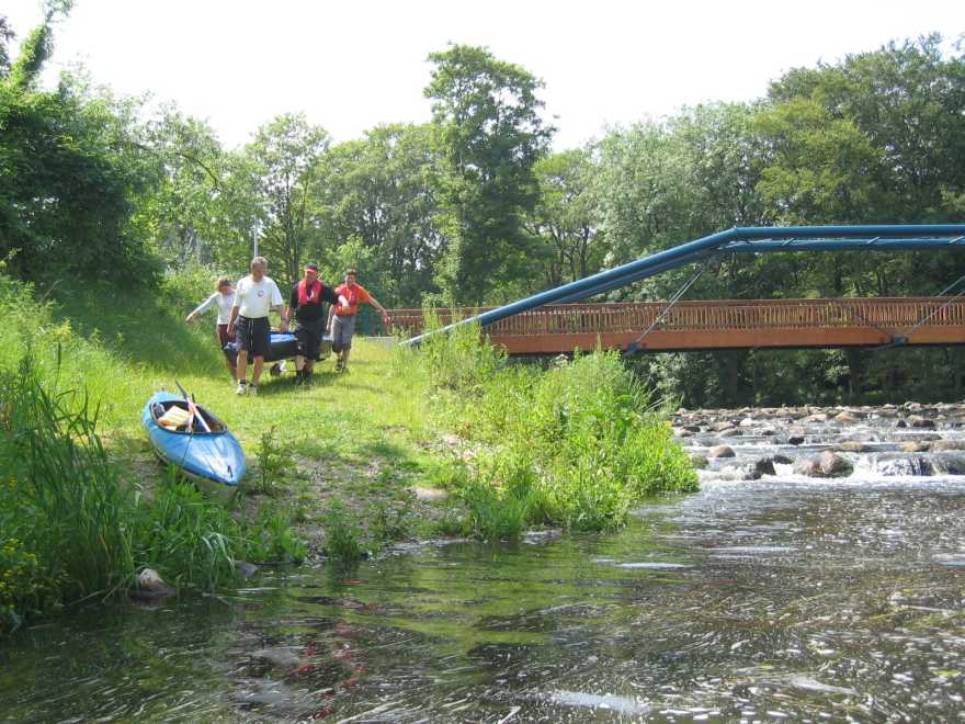 die Schilder achten (man hört das Wehr eher, als man es sieht!) und links Umtragen. |