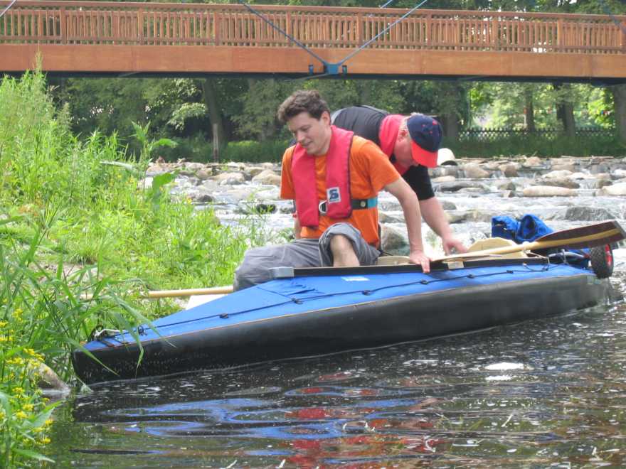 Schon nach kurzer Zeit gilt es, eine Sohlschwelle zu Umtragen. Kein Problem, allerdings sind die Ein- und Ausstiege recht hoch. |