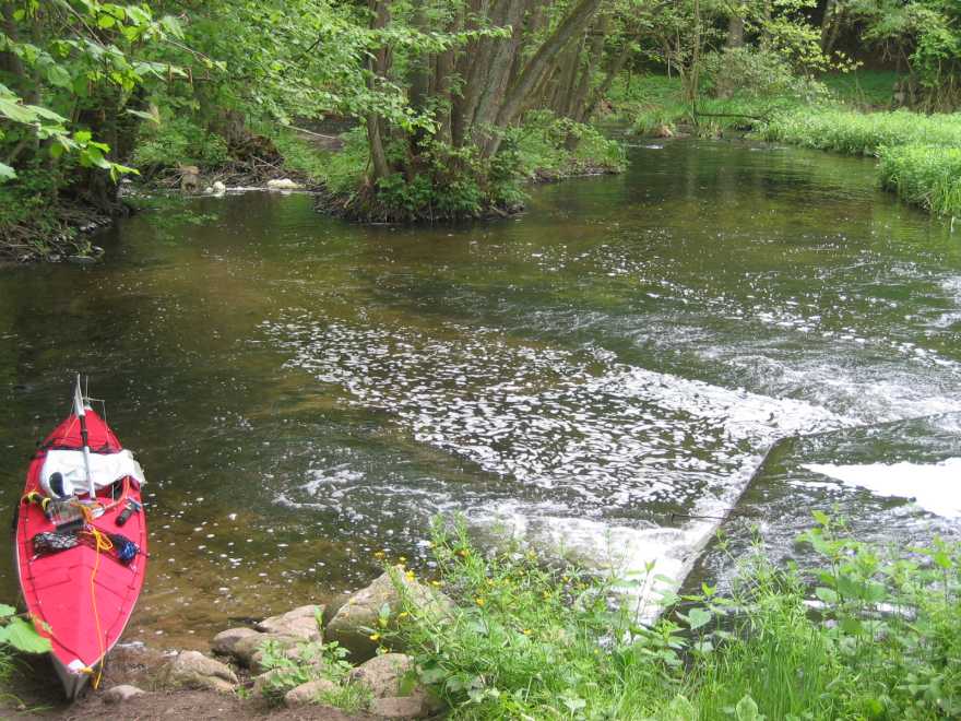 Das Wehr bei Karnin – Umtragen mit Bootswagen ist einfach … |