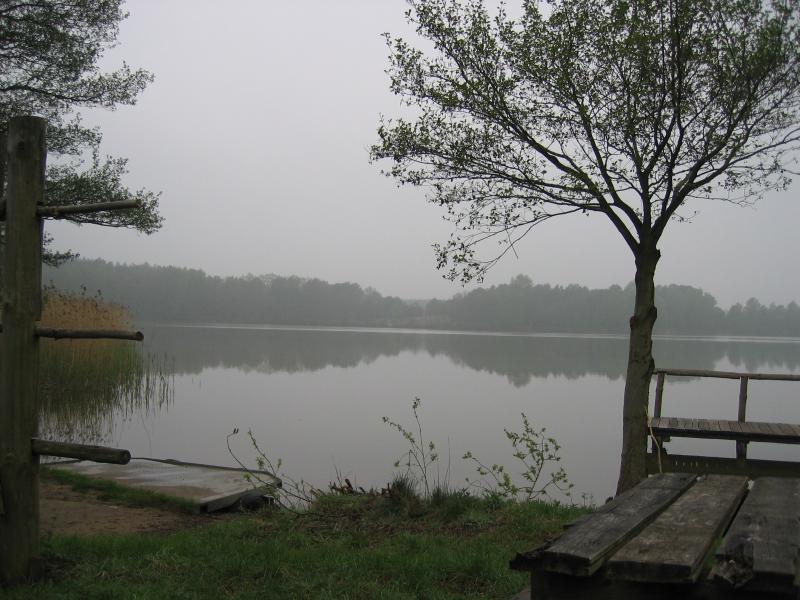 Der Morgen begrüßte uns mit fahlem Licht und warmer Luft. Ruhig lag der See im Morgennebel. |