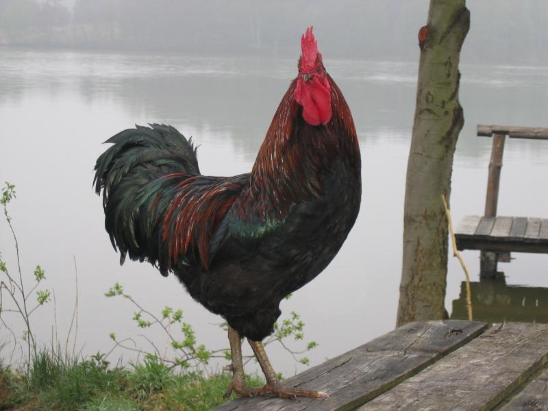 Im Schlepptau hat er natürlich eine Henne. Allerdings hatte der eitle Gockel seine Brille wohl nicht aufgesetzt. |