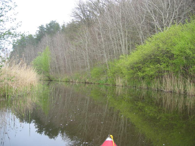 Die Einfahrt in den ebenfalls spiegelglatten Woblitzsee. |