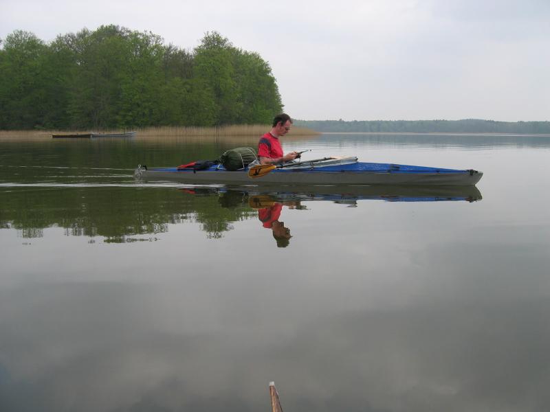 Vor uns der spiegelglatte Useriner See. Eher eine Seltenheit. |