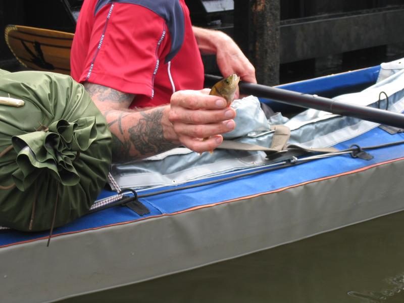 Es ist so warm, dass selbst die Fische faul werden und sich mit der Hand fangen lassen. |