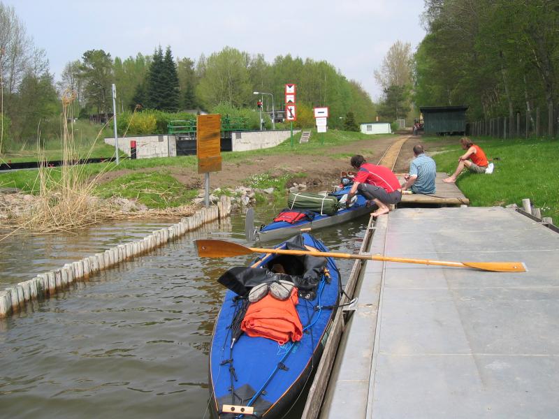 Die Einsetzstelle an der Useriner Schleuse. Umtragen ist hier kein Problem. Mit vier Booten wurden wir allerdings nach eindrücklicher