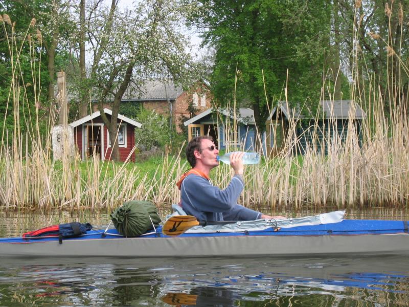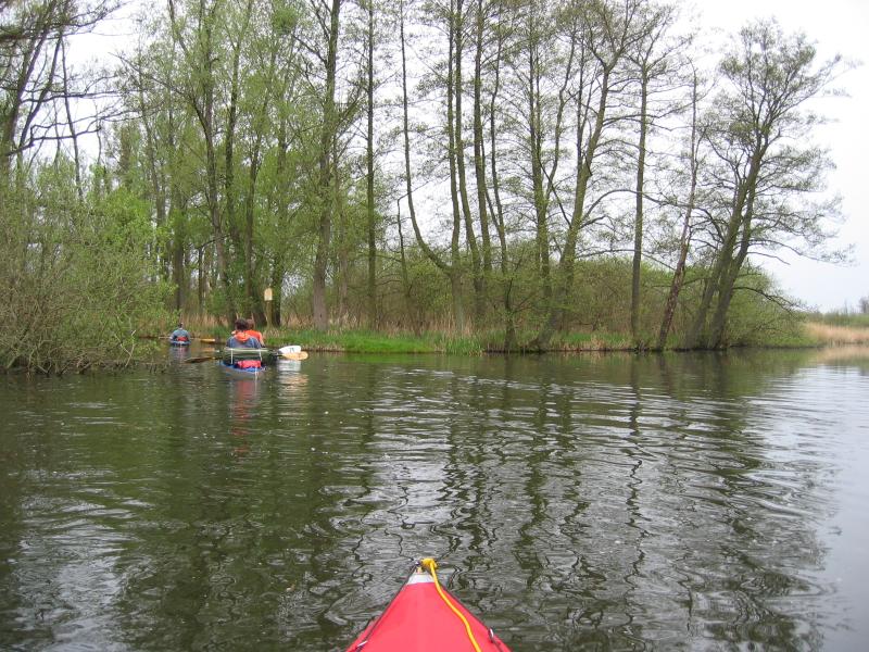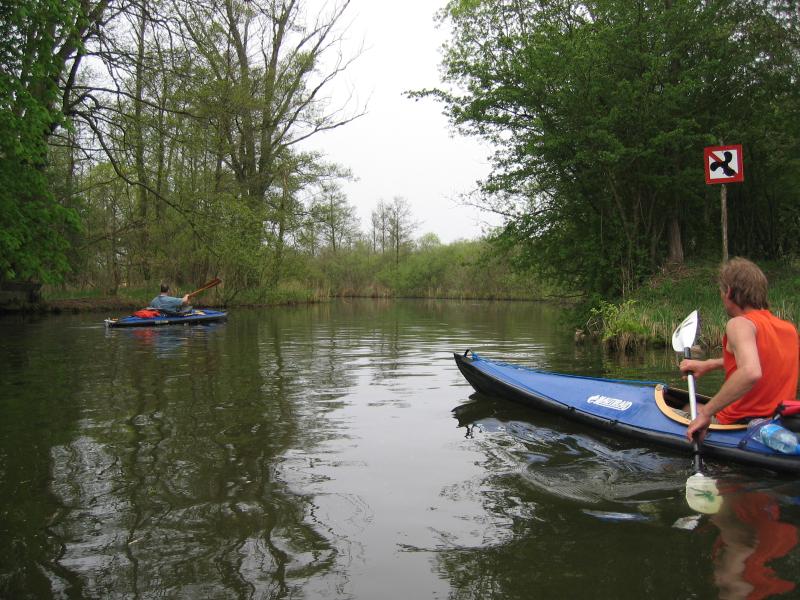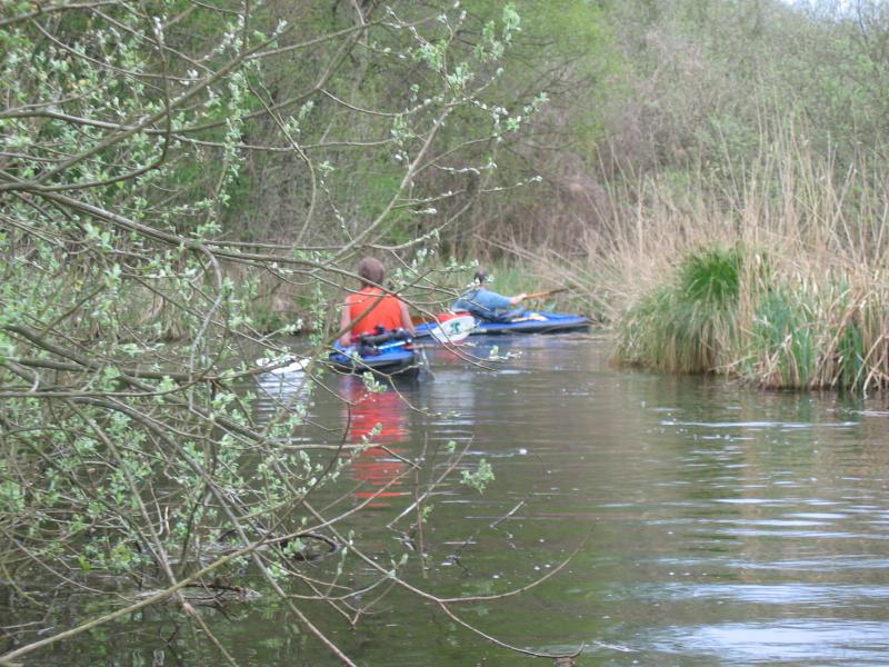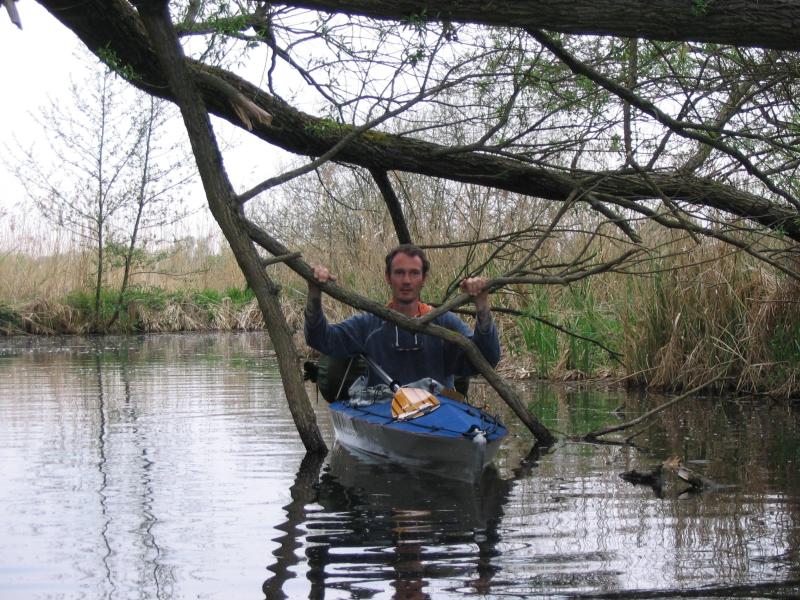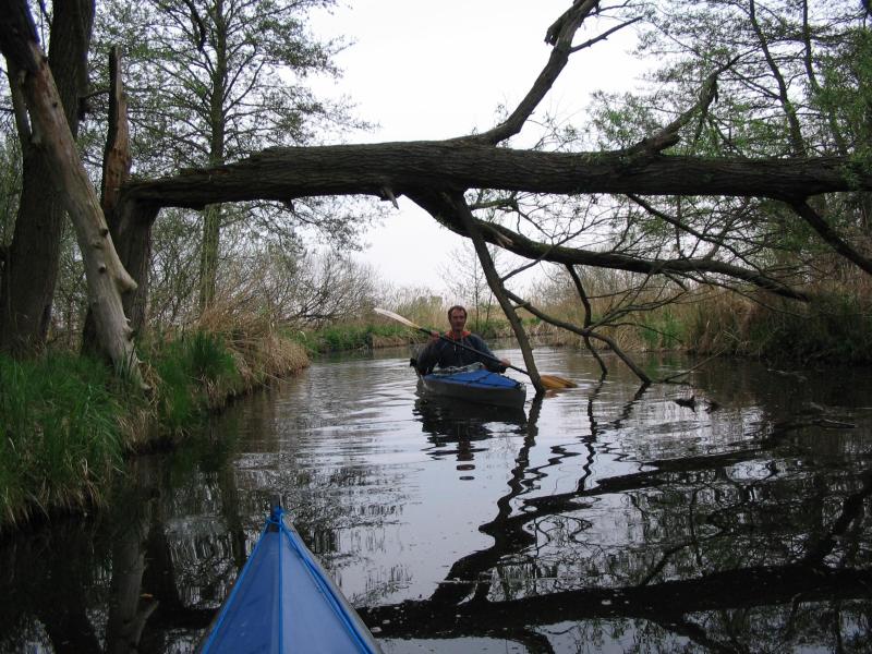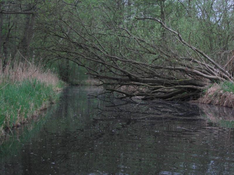 Schon früh am Morgen wurde der Abfluss des Jamelsees ausgebaggert. So konnten wir herauspaddeln. Erst kurz vor der Havel mussten wir wegen einer in den