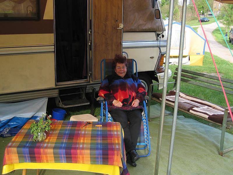 Blick vom Sanitärhaus direkt auf Ekkis Wohnmobil, westlicher Teil des Platzes. |