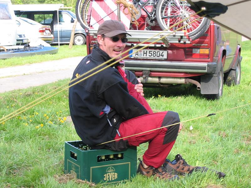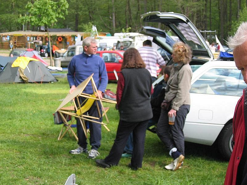Raimund Saxe mit seinen hervorragenden Falttischen „Typ Berger“. Davon schwimmen jetzt ein paar mehr in den Booten mit, denn in Holz gibt es wohl