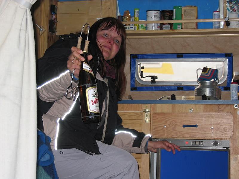 Geschafft! Die „Schwarzfahrer“ sind eingetroffen und werden von Karl-Udo und Anja begrüßt. Kühl ist’s.