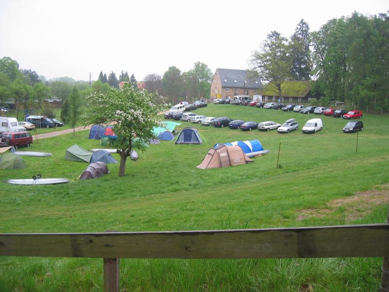 Daher schnell die Boote auf die Wagen und ab zum Zeltplatz. Wir gingen dahin, wo es letztes Jahr ruhig war, in den Ostteil des Platzes (bei den