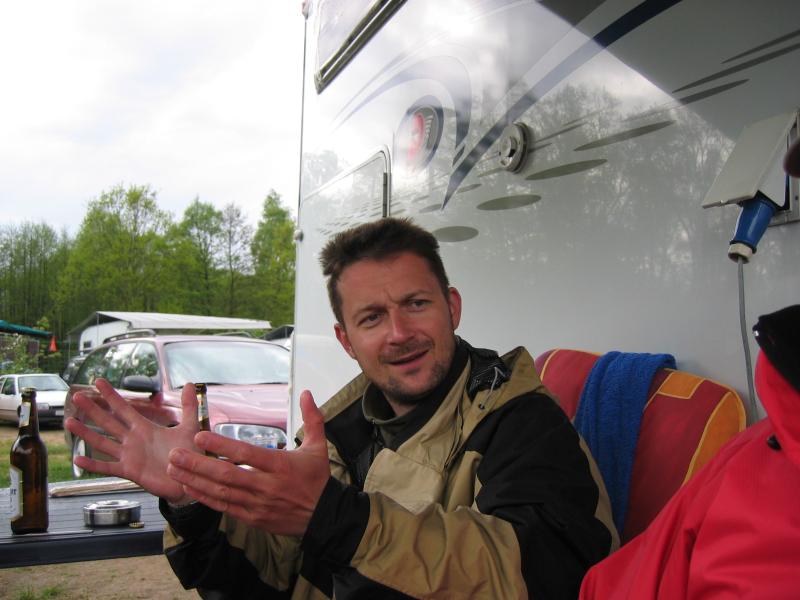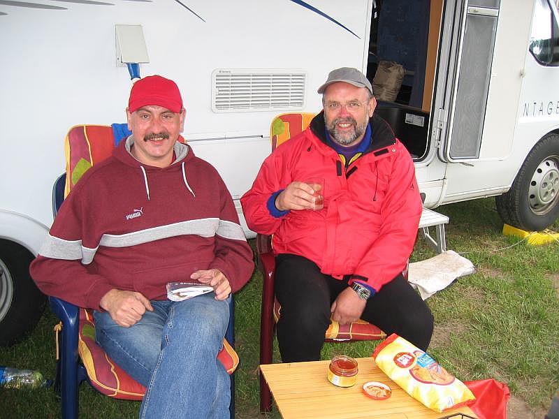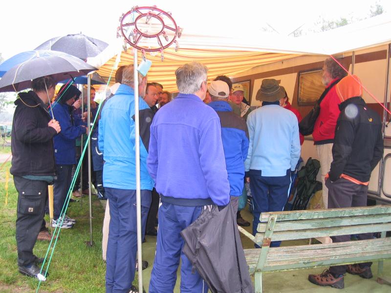 Besprechung vor Ekkis Wohnmobil – das Wetter zwang zur Improvisation. |