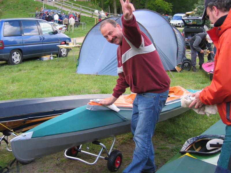 Wolfgang baut nicht nur tolle Liegeräder sondern auch Kajaks. Weiter hinten mehr davon. |