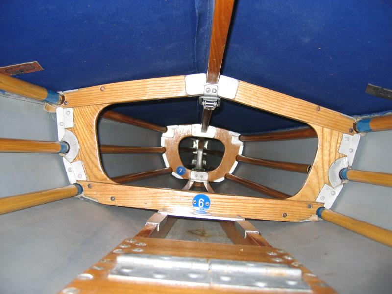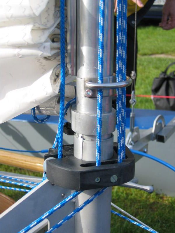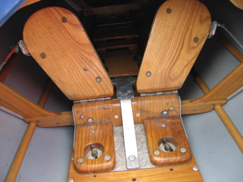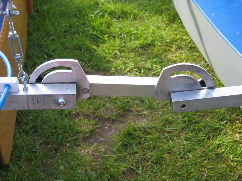 Nach Aussage des Besitzers machen diese Gelenke Probleme. Bei Wellengang wird der Ausleger vom Druck des Wassers nach oben gedrückt. |